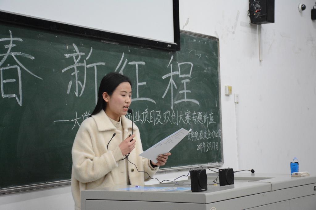 卫红丽老师应邀做专题指导。1507班武振宇、1602班刘宇嘉与同学们分享个人参赛心得。团委副书记樊琳琳主持讲座,活动吸引了约400名学生参加。