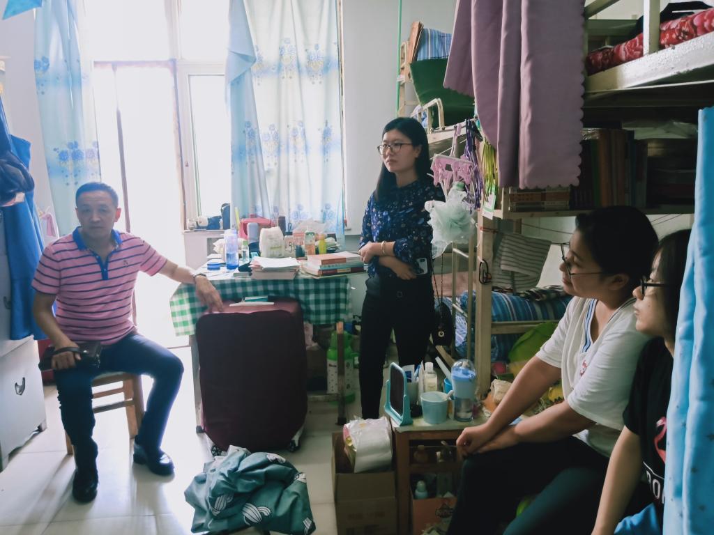 党委书记强汾生、党委副书记钱成、团委副书记樊琳琳以及专职辅导员侯昕昊、史晓敏一行对学生宿舍进行了走访。