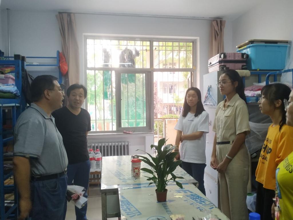 党委书记强汾生,院长赵变亲,党委副书记钱成,副院长栗永清、李伟,团委副书记樊琳琳,19级各班辅导员及部分教师代表一行人深入新生宿舍进行走访慰问。