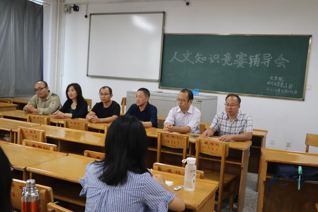 古代文学党支部老师,于9月27日下午在12503教室举办人文知识竞赛专题辅导会。院党委书记强汾生,古代文学党支部书记赵继红,支部党员郭庆财、张志斌等出席活动。刘士义老师担任主讲,吸引了全体即将参加复赛的同学到场聆听。