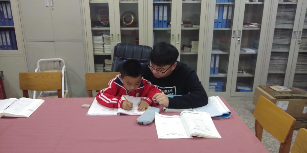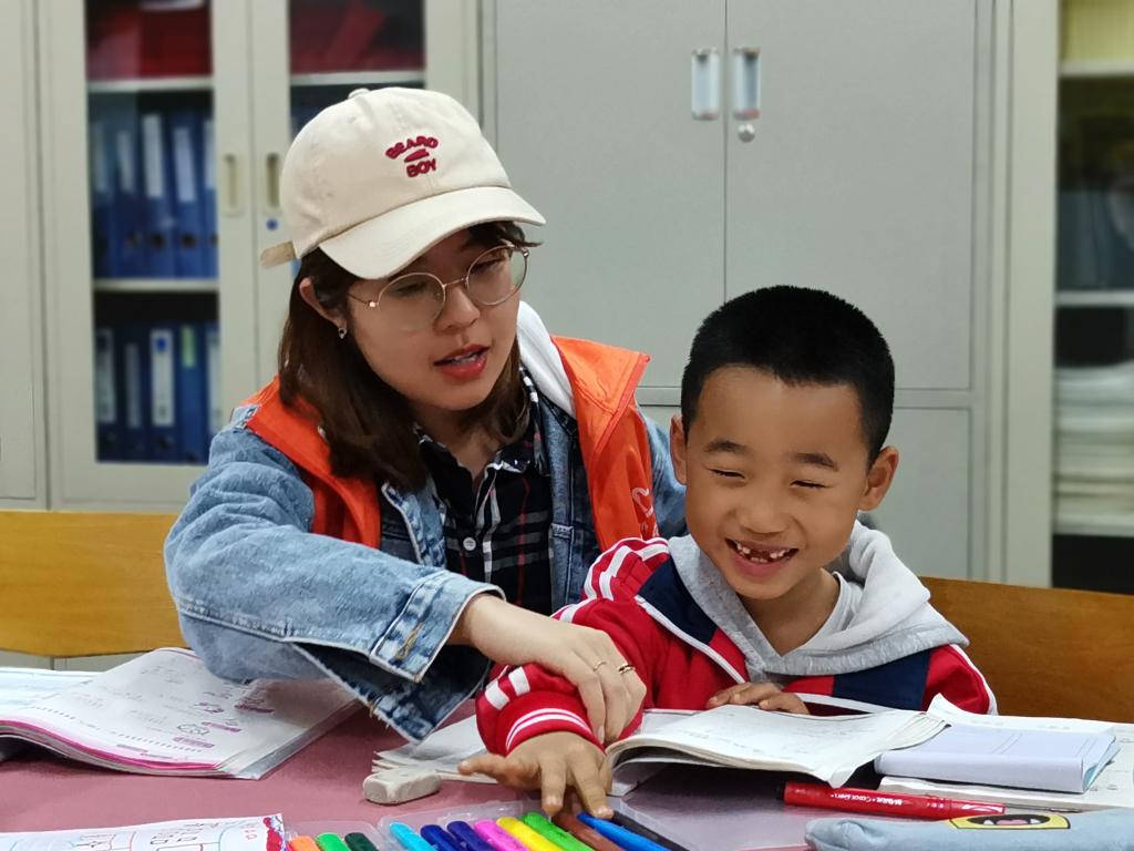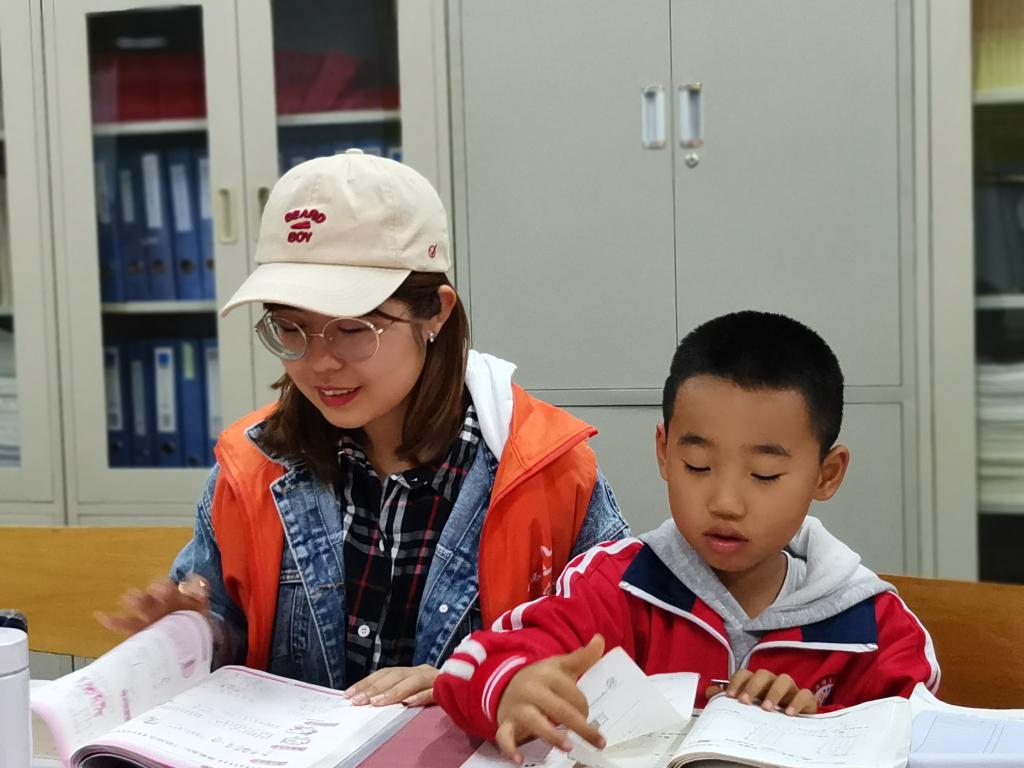 活动正式开始前,志愿者们积极和老师们沟通了解孩子的现阶段学情、作业完成情况及性格爱好等,及时为接下来的辅导工作奠定良好基础。在安静宽敞的活动室中,志愿者热心地对每个孩子进行一对一辅导,根据当天作业数量,细分时间、监督作业进度、检查作业完成质量、讲解错题难题,给孩子的学习带来了实质性的帮助。在和谐轻松的氛围中,志愿者和孩子的距离渐渐拉近,学生不懂就问,“小老师”耐心解答,你一言我一语,在双方的共同努力下高效完成了作业。