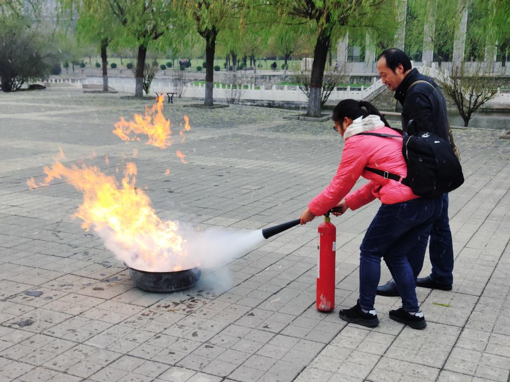 在活动中,张威老师为同学们系统讲解了火场逃生的注意事项及灭火器的基本知识,详细解答了同学们提出的各种疑惑。在灭火实践环节,张威老师提出“拔销子、压把子、对准火苗子”的顺口溜,强调使用灭火器要“运用得当,胆大心细”,在发现火势时,及时采取措施控制火势,避免不必要的损失。在认真听讲后,许多同学在老师的指导下使用不同类型的灭火器现场灭火,将学习的理论知识付诸实践。