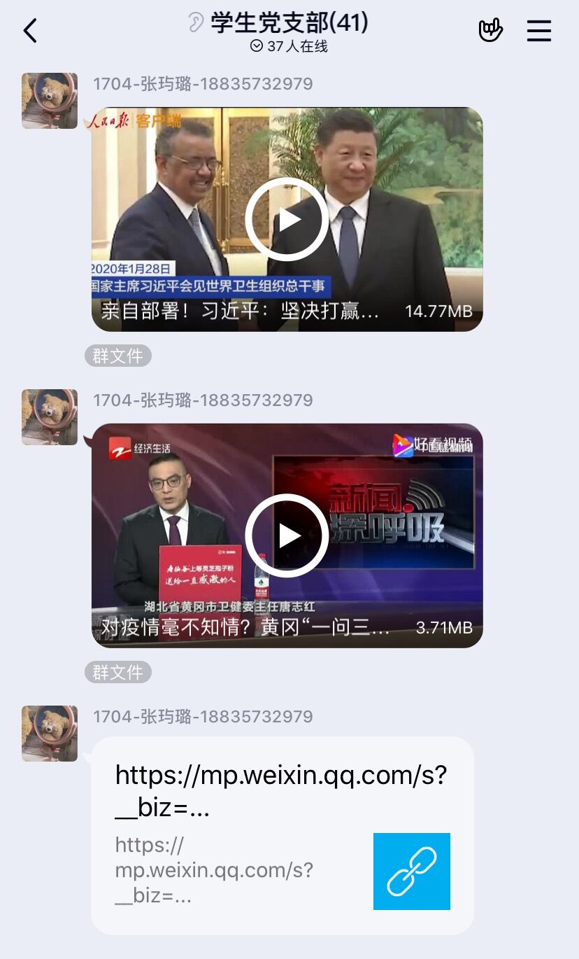 在讨论交流环节,支部成员就自身、家人及所在地区的防疫情况和支部近期针对疫情防控所开展的各项活动进展情况进行了汇报,大家纷纷表示自己会坚定信心,坚决贯彻党团号召,加强个人防护,积极配合排查,不造谣、不信谣、不传谣,自觉担当防疫工作的正能量“宣传员”。