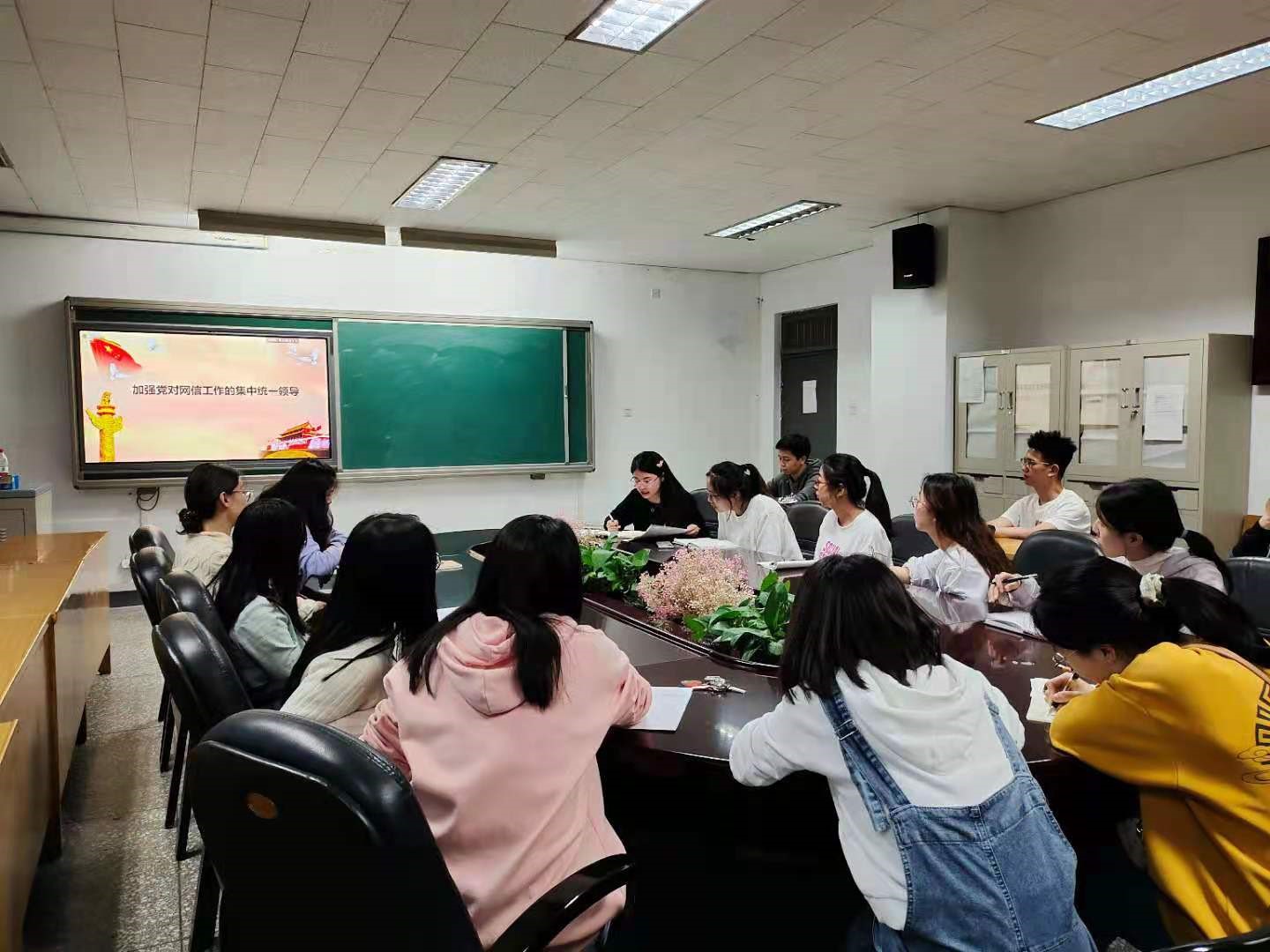 会议室召开“加强党对网信工作的集中统一领导”的学习交流会议。会议由组织委员邢冉冉主持,支部成员参加会议。