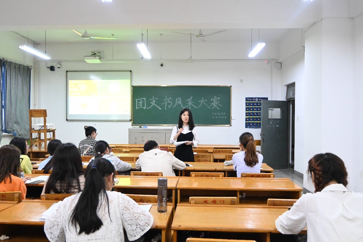 大赛共由支部简介、案例分析、团课讲解、个人风采展示四个模块组成。各团支书采用多种形式展示支部风采,其中,2002班和2001班团支书用数据展示工作,清晰了然地展示了一学期以来团支部活动情况;2006班团支书通过视频配音互动的方式生动地介绍了团支部概况,为其他团支部的建设工作提供了新的思路。在团课讲解中,各团支书主要以“四史”和“抗大”“联大”精神为主题,充分再现了革命年代的先进精神,坚定了同学们学习先进精神的信心。随后,各团支书以朗诵、唱歌、手势舞等的方式进行了各具特色的才艺展示。经评比,最终确定2006班团支部书记荣获第一名,2004班团支书获得第二名,1901班团支书获得第三名。