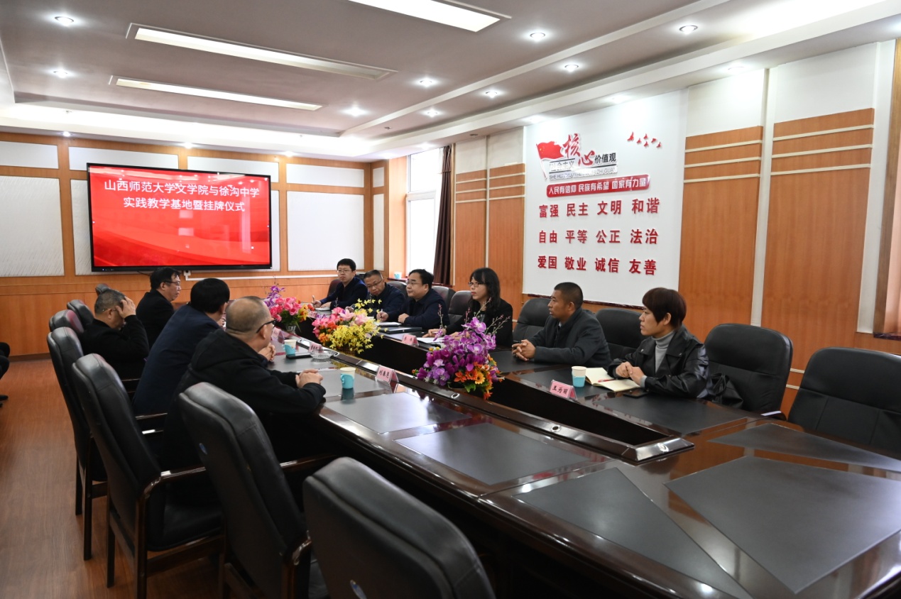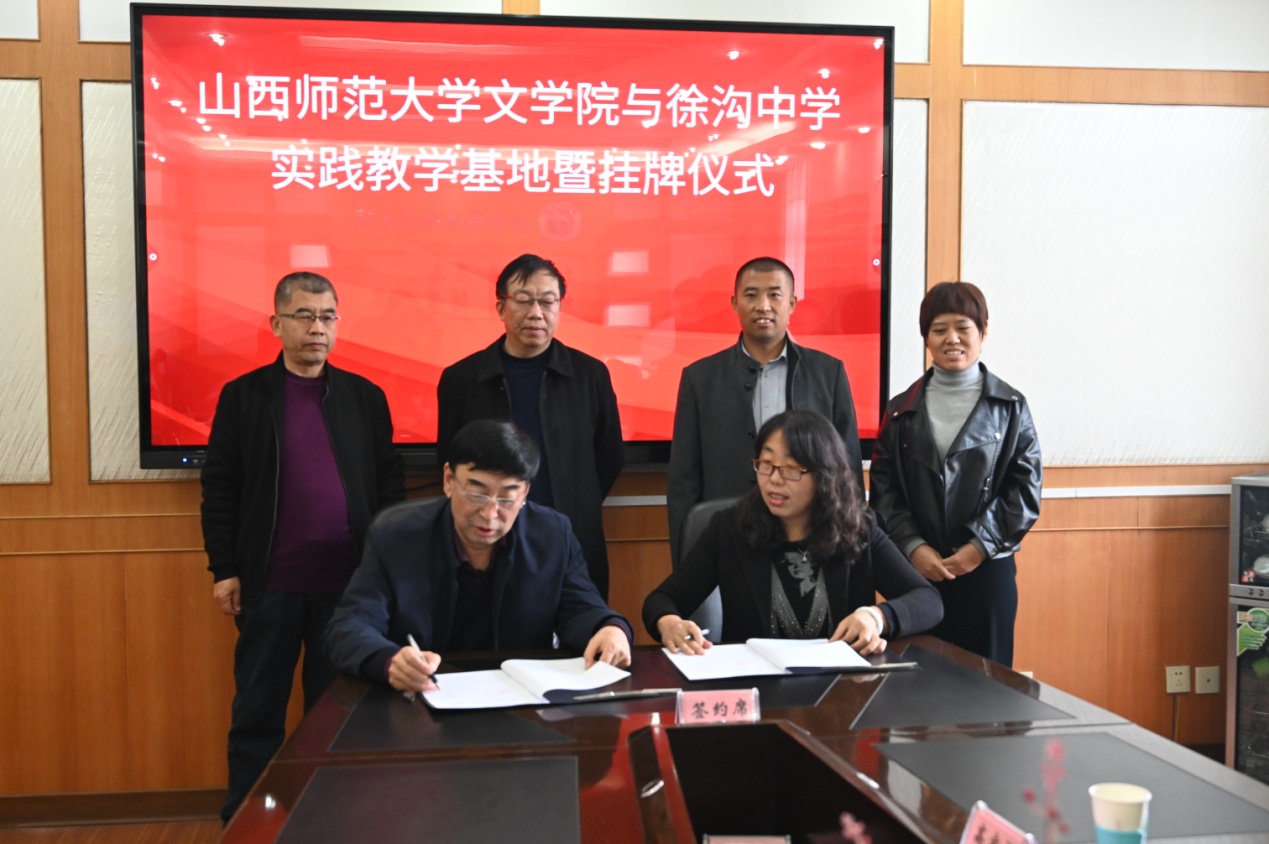 汉语言文学专业实习基地。签约仪式上,双方进行了友好的工作交流。李伟副院长就师范生培养质量、学生实践等事项和徐沟中学领导进行了交流,同时双方在教师学科教研方面均表达了深度合作的意愿。