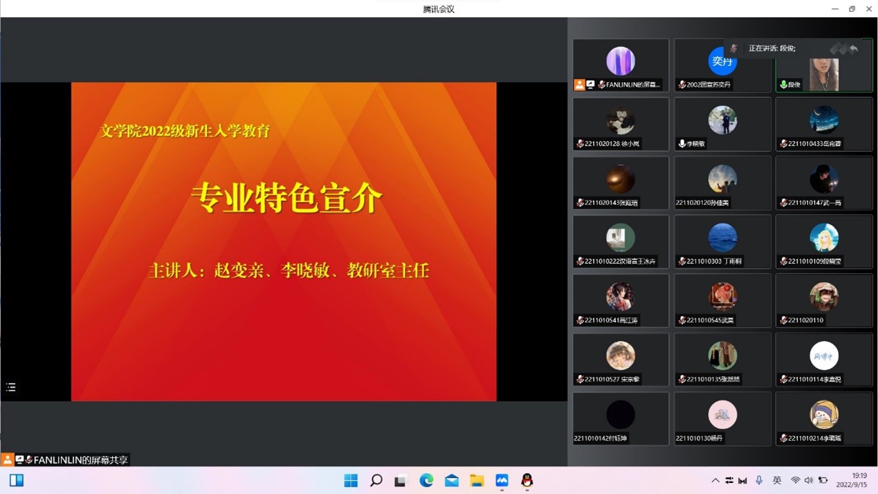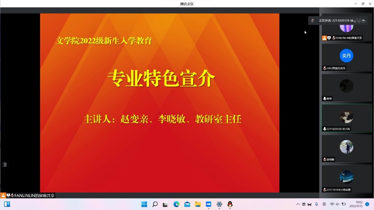 副院长、中文系系主任李晓敏主持,各专业教研室主任担任主讲,全体新生参加会议。