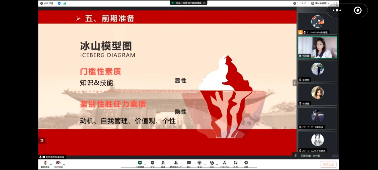 李晓敏在总结发言中归纳了刘宇嘉取得成功的几个必要条件:目标明确,有了为之努力的方向才可能事半功倍;做事条理,做到心中有数;有韧劲、有定力,为了实现目标不懈努力。希望与会同学们都能够虚心吸取经验,对未来发展做出合理规划。