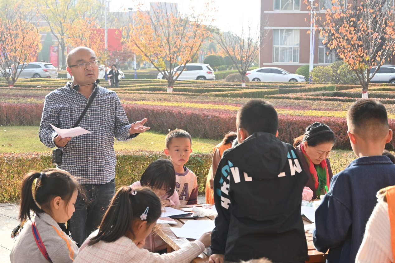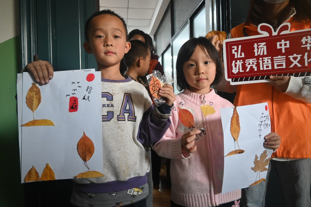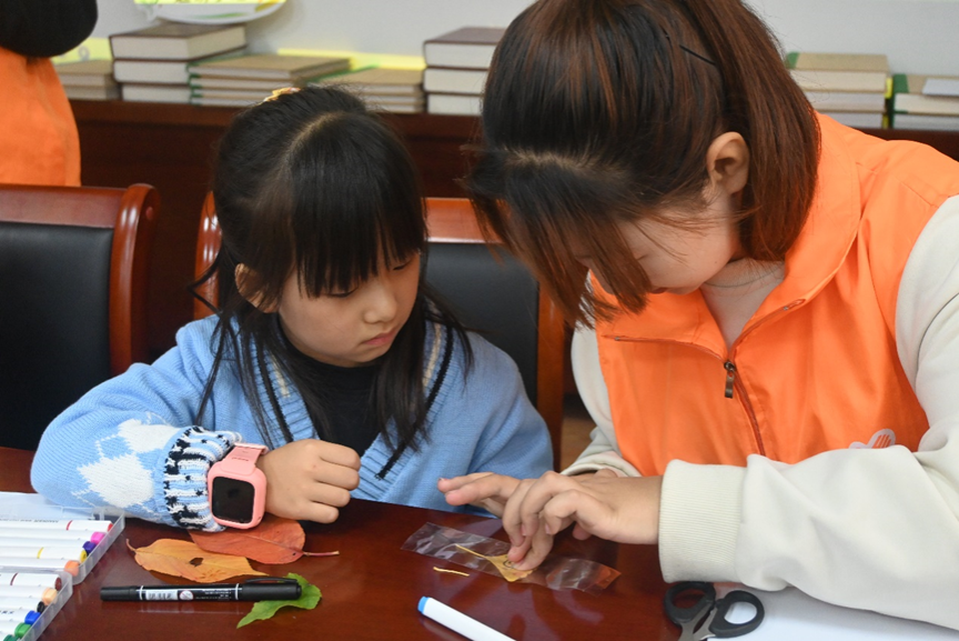 在本次研学活动中,鲁立智向小朋友们讲解了《九月九日忆山东兄弟》的内涵,并带领他们在校园里寻找自己心仪的树叶、写下对生活美好的期许。随后,在志愿者的组织下,小朋友们有序到达院会议室,通过观看视频、志愿者指导等方式学习制作树叶卡片,将对秋天的美好愿望寄托在卡片上,创作出属于自己的作品。最后,小朋友们将自己的作品进行集体展示,在一片欢声笑语中活动圆满落下帷幕。