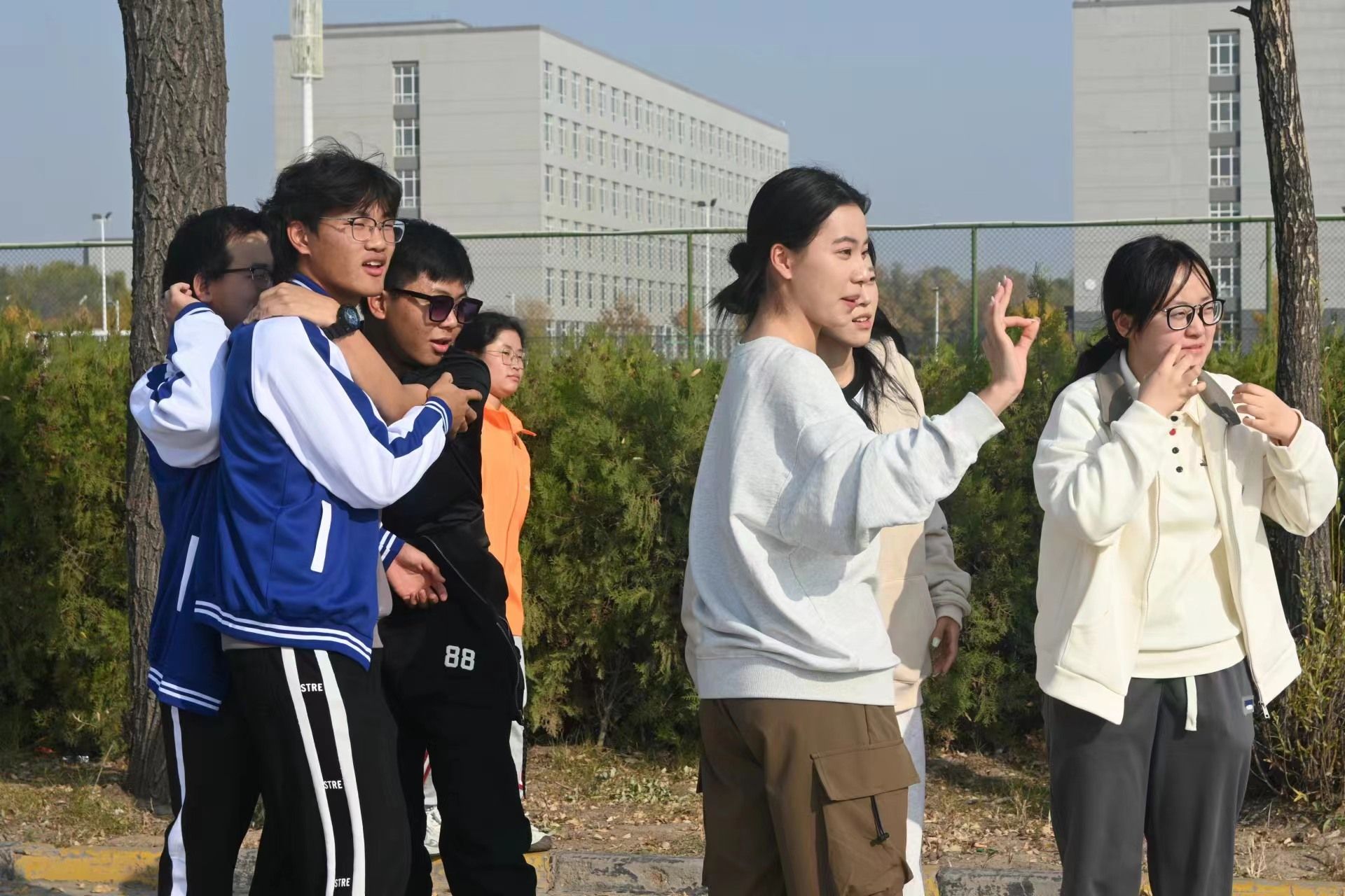 活动伊始,各个班级依次展示本班口号,进行赛前热身。同学们神采飞扬、精神抖擞,展现出积极向上的青春风采。竞技娱乐环节中,各班同学在素拓师的引导下,分组参加了“价值组合”“踩气球”“导演说”“扔沙包”“胡辣汤”和“倒着说”六个游戏,集体参加了“贴膏药”游戏。活动在同学们的欢声笑语中落下帷幕。