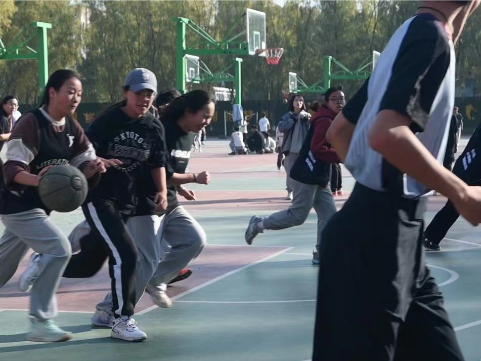 在学子时代广场篮球场举办“与子偕行,势不可篮”秋季迎新篮球赛。本次比赛分为女篮、男篮两场。女篮比赛分为两节,每节十五分钟;男篮比赛分为四节,每节十分钟。23级球员表现优异。