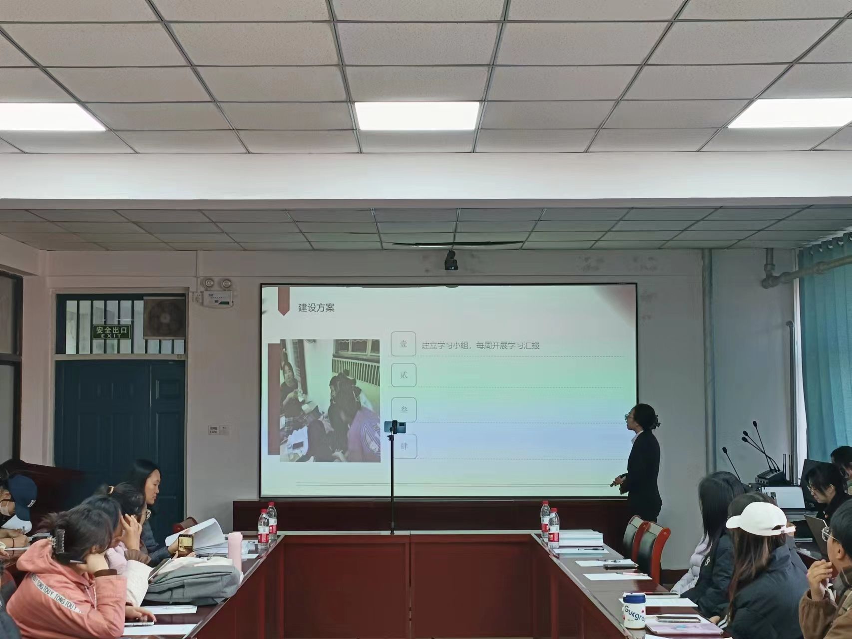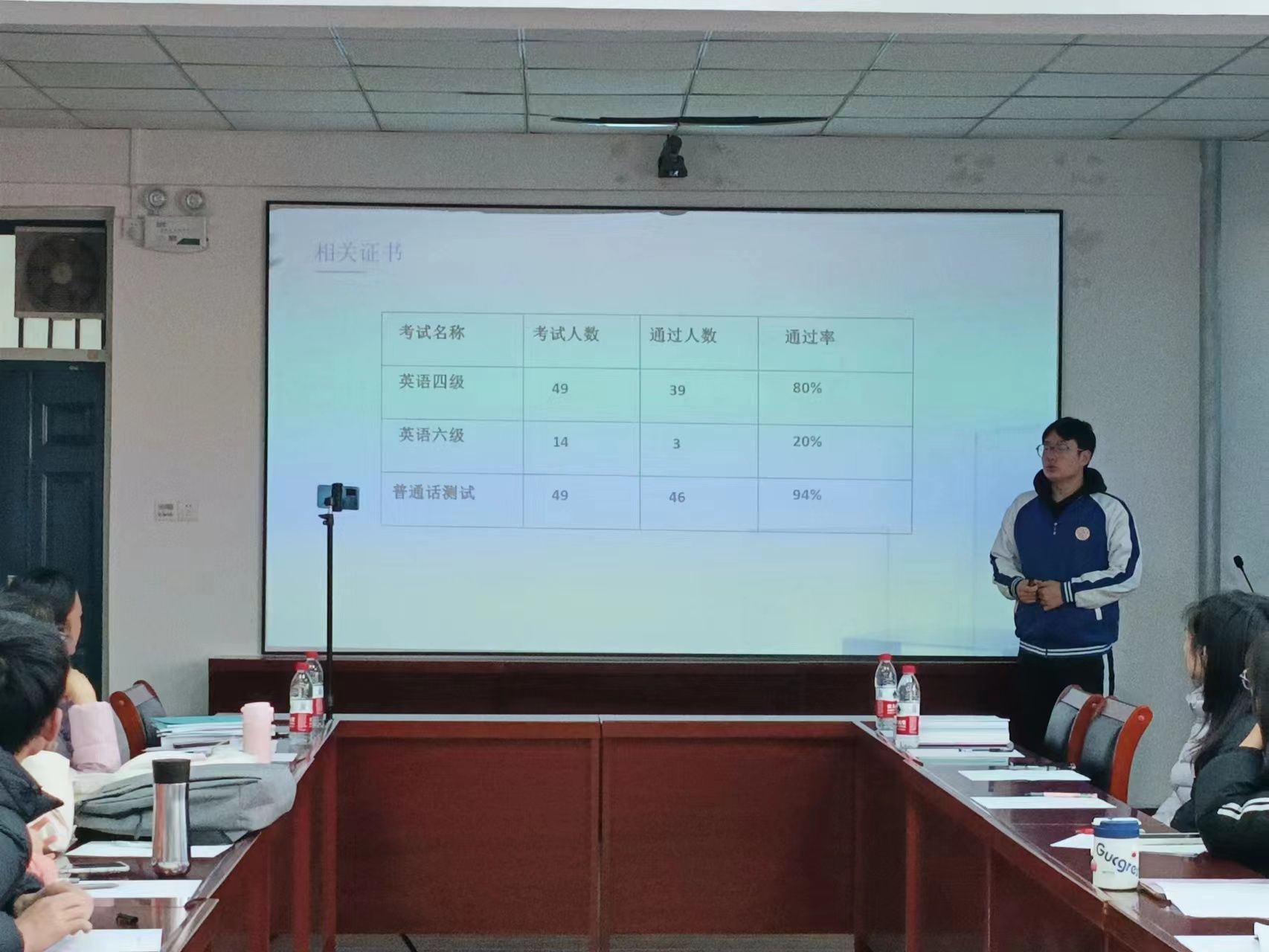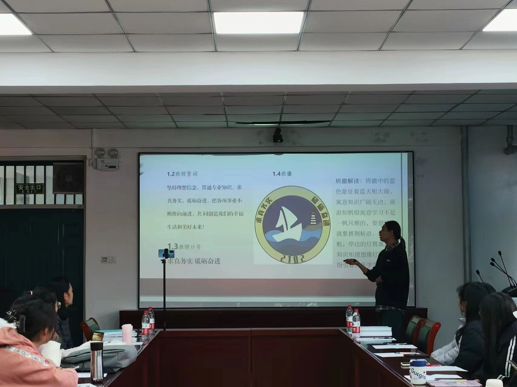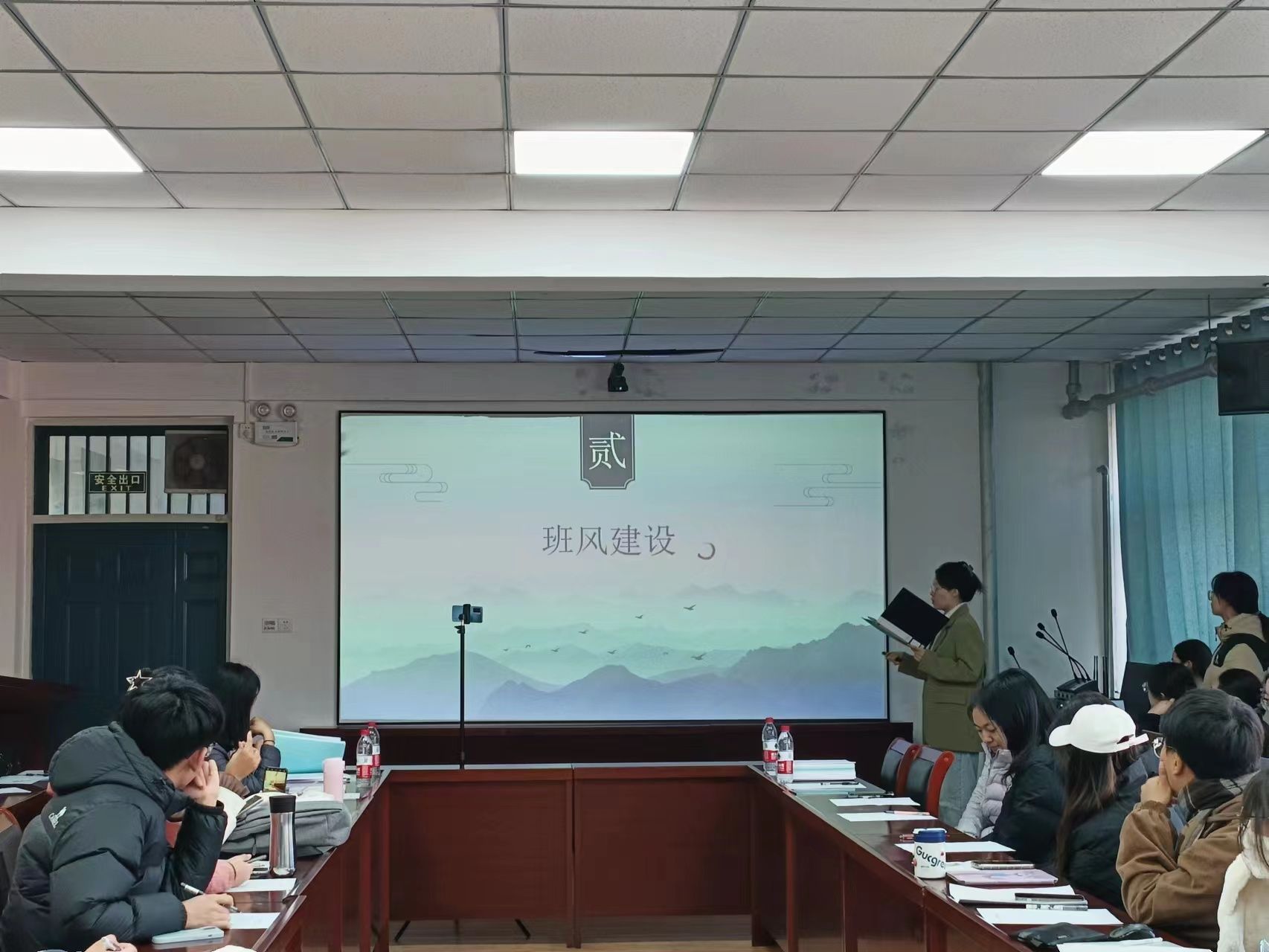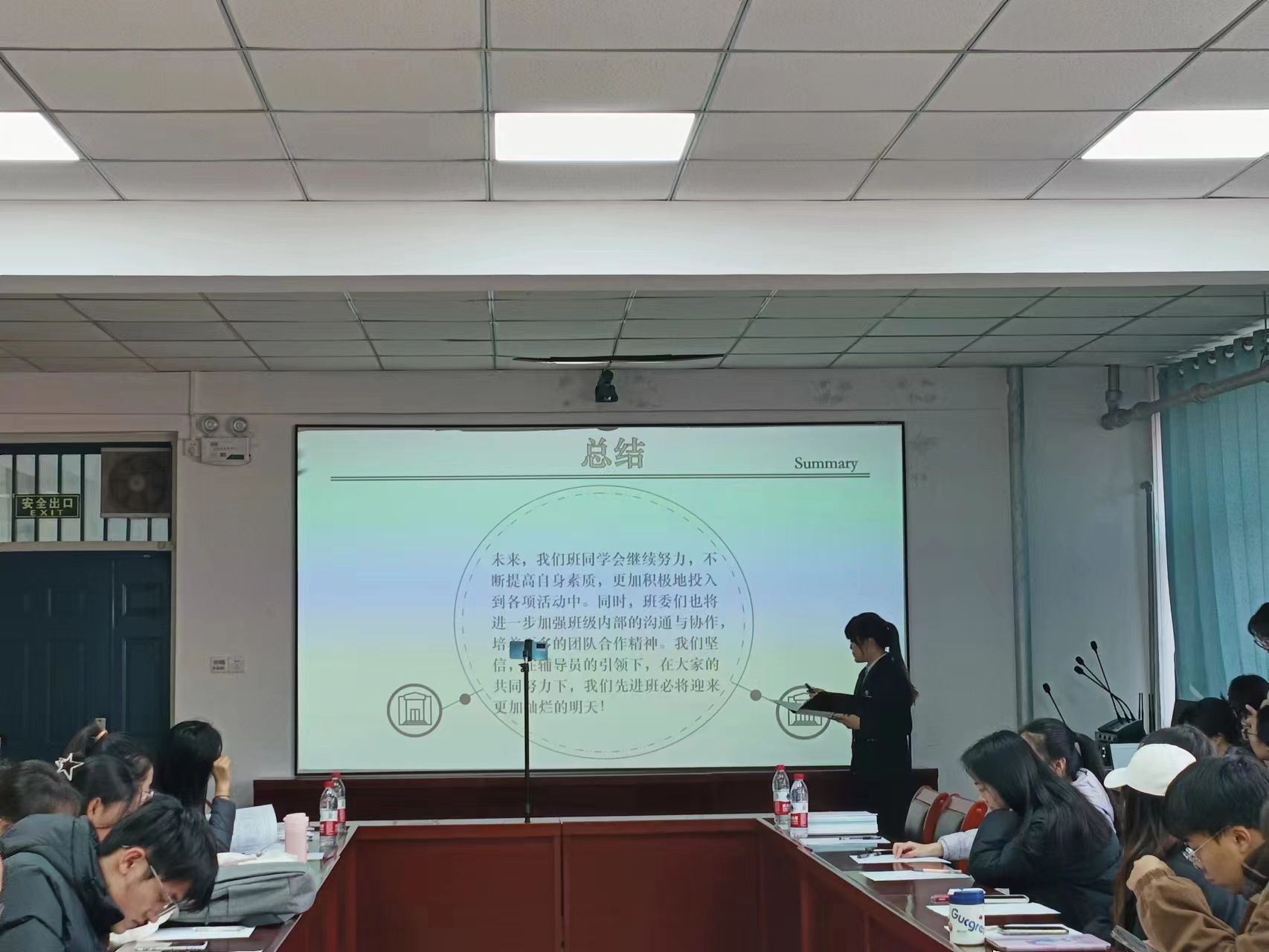 于2201会议室举办先进班集体答辩。副院长樊琳琳、全体辅导员、学生代表担任评委。