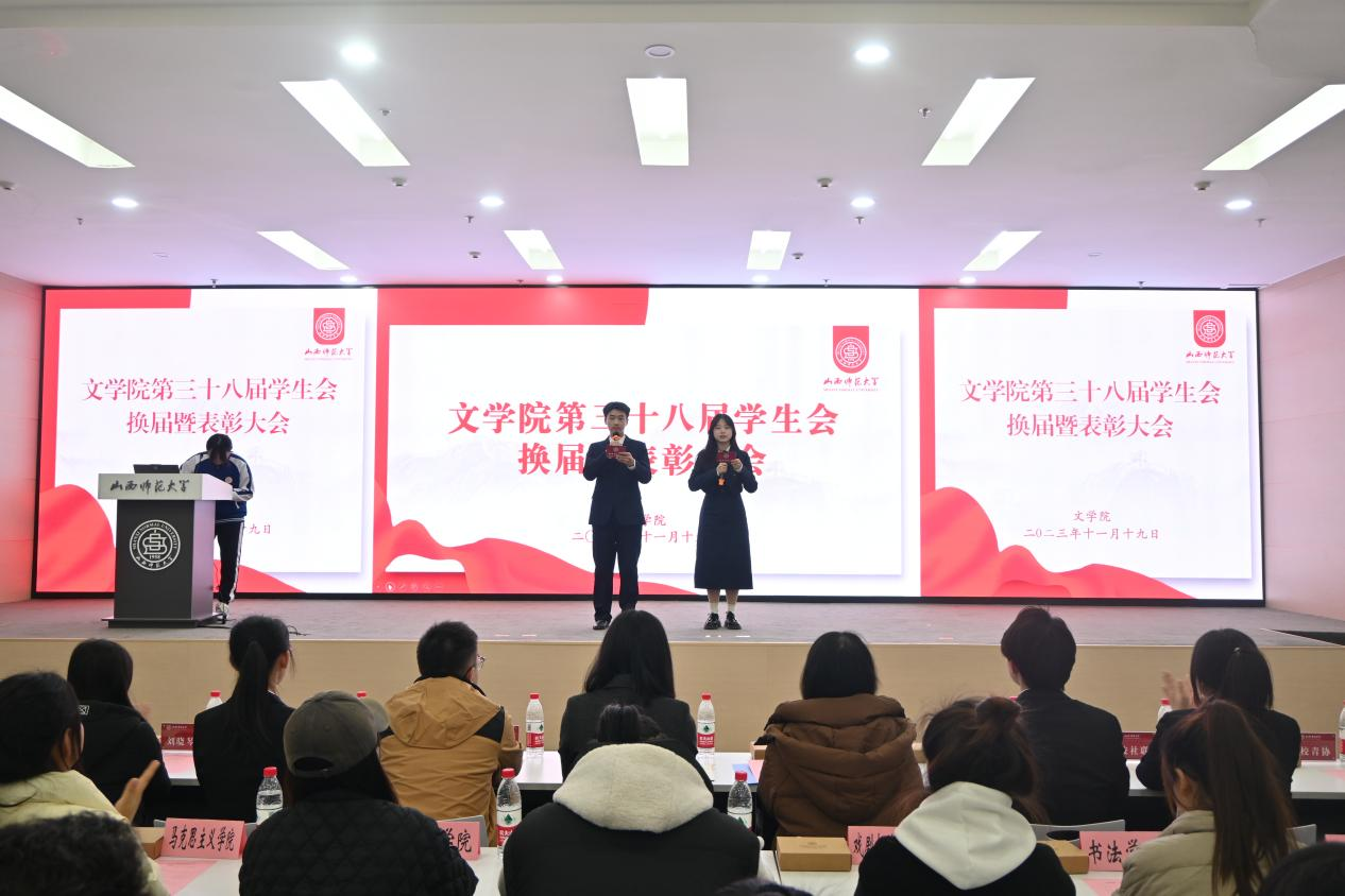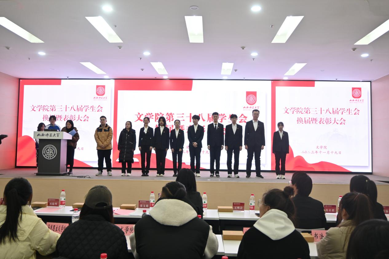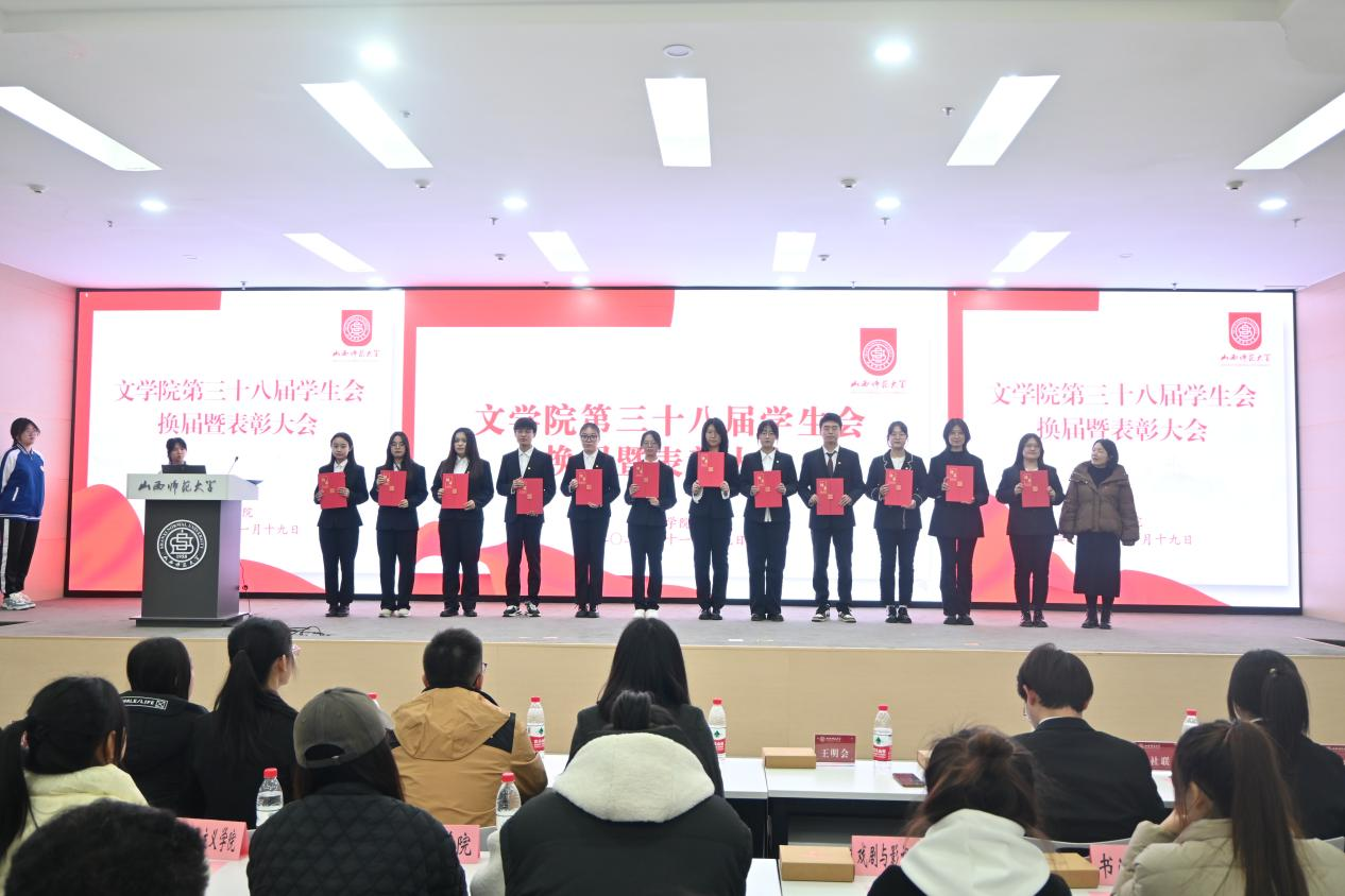 第三十八届学生会换届暨表彰大会在北区二号楼报告厅召开,副院长樊琳琳,院专职辅导员王明会,校学生会、校青协、校社联、各兄弟赚钱网站