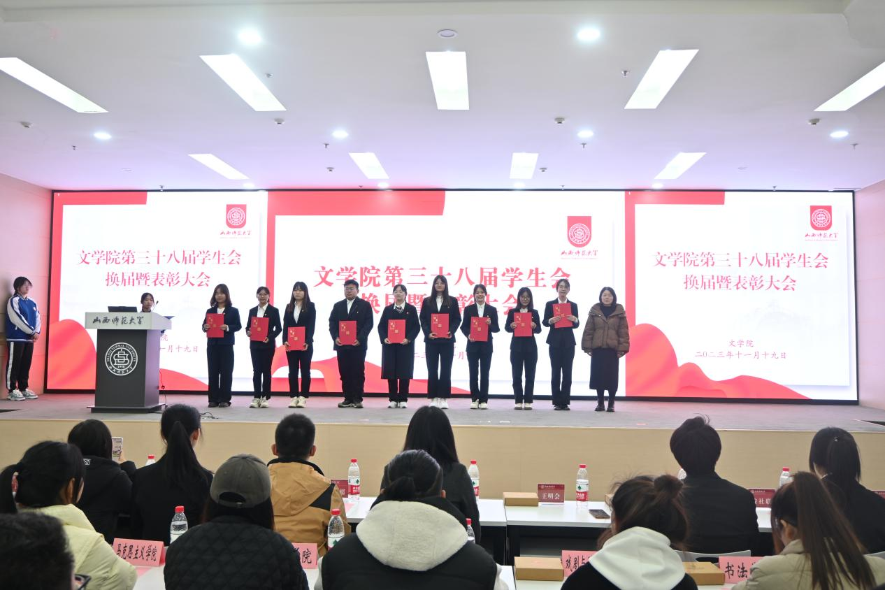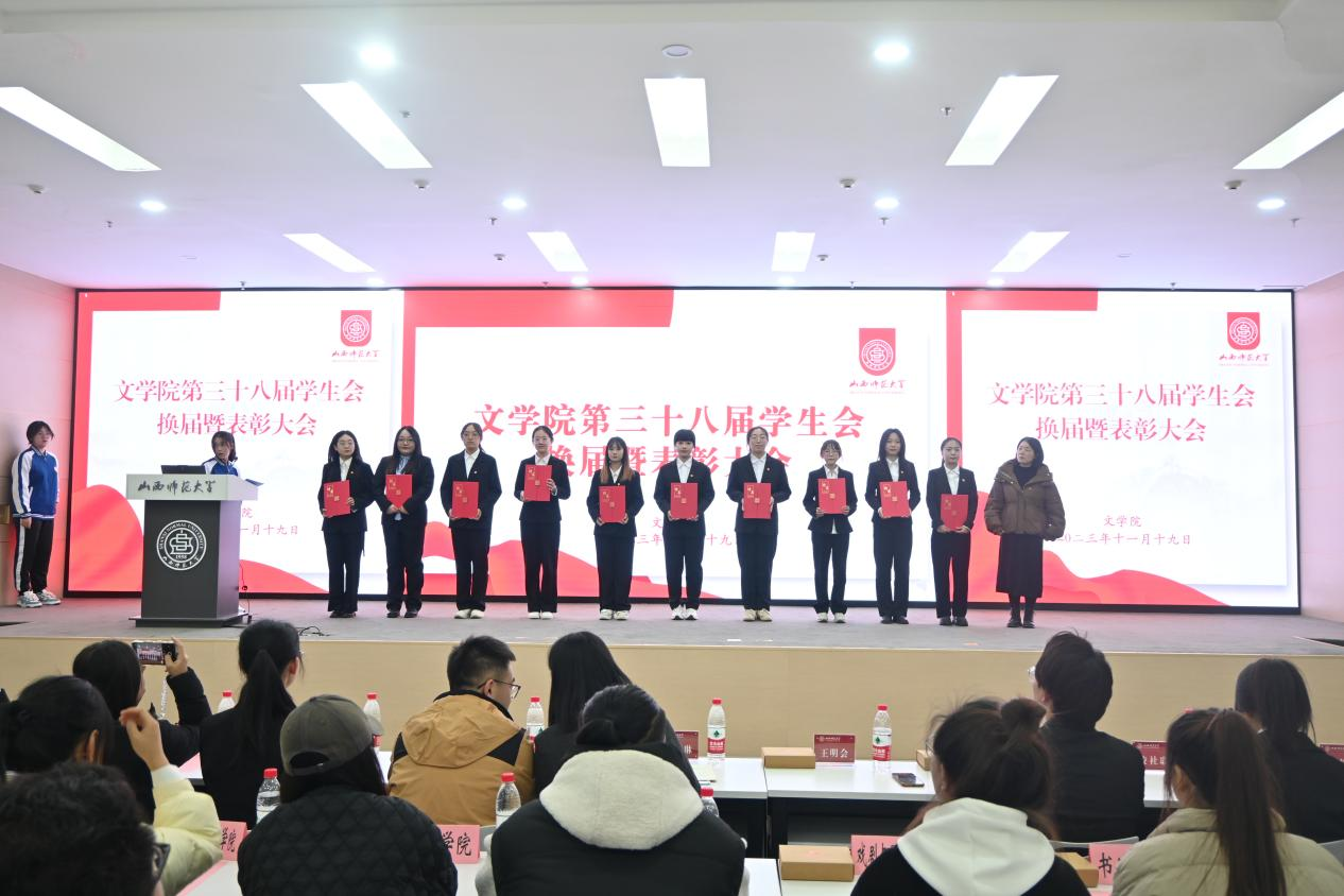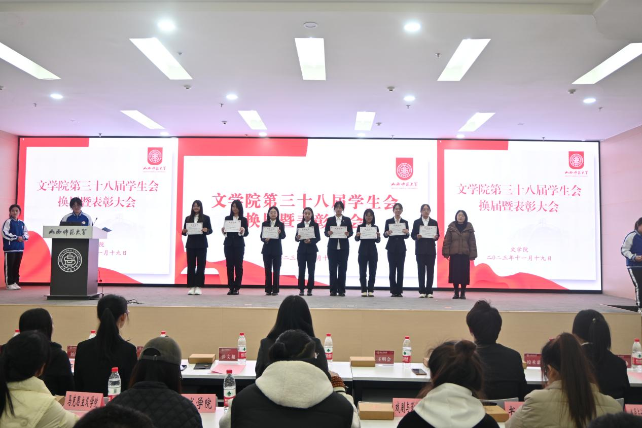 第三十八届学生会换届暨表彰大会在北区二号楼报告厅召开,副院长樊琳琳,院专职辅导员王明会,校学生会、校青协、校社联、各兄弟赚钱网站