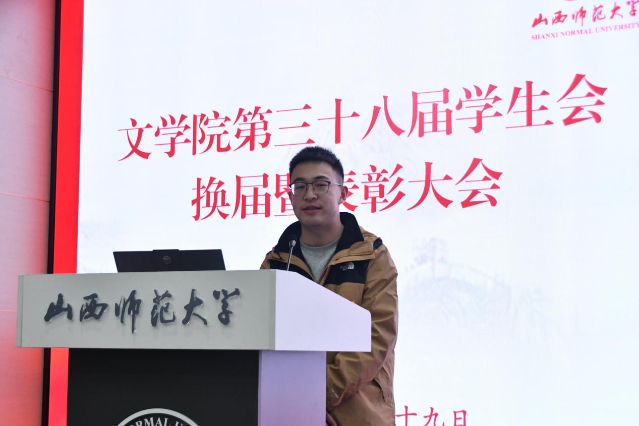 学生会各项工作的同时,对下一届学生会成员提出建议和期望。第三十六届学生会执行主席张文超回顾了过往四年在学生会的工作经历,第三十七届学生会执行主席江帆作工会总结。