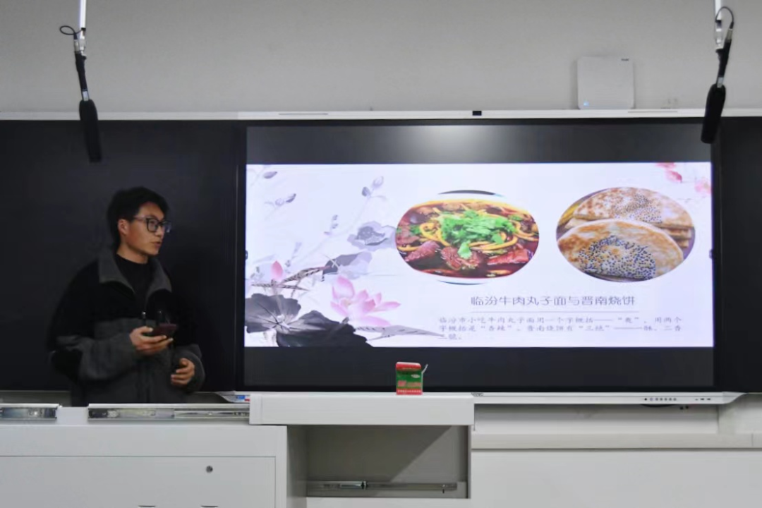 活动伊始,主持人介绍了山西的历史文化、风土人情,通过一段精彩的视频向同学们展示了山西的壮美风光和丰富的文化遗产。在介绍家乡环节中,来自山西各市的同学们通过PPT展示、分享故事等多种形式,向大家介绍了各市的代表建筑、特色美食、民俗文化以及近年来的发展成就。趣味活动中,全班同学共同参与,班级氛围十分活跃。同学们纷纷表示,通过这次活动,更加深入地了解了家乡的文化和历史,也更加自豪于自己是一名山西人。