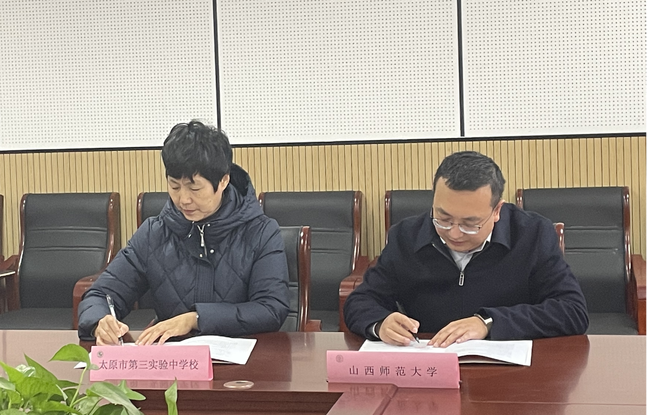 的发展作了详细的介绍,并对太原市第三实验中学校对此次合作的大力支持表示感谢。他指出,太原市第三实验中学与山西师范大学比邻而居,如此优越的地理位置为两校合作提供了非常便利的条件。中学的教育实习是学生提升本领的绝佳实践平台,双方将以共建实践教学基地为契机,不断拓展合作领域,为山西省基础教育发展作出更多贡献。