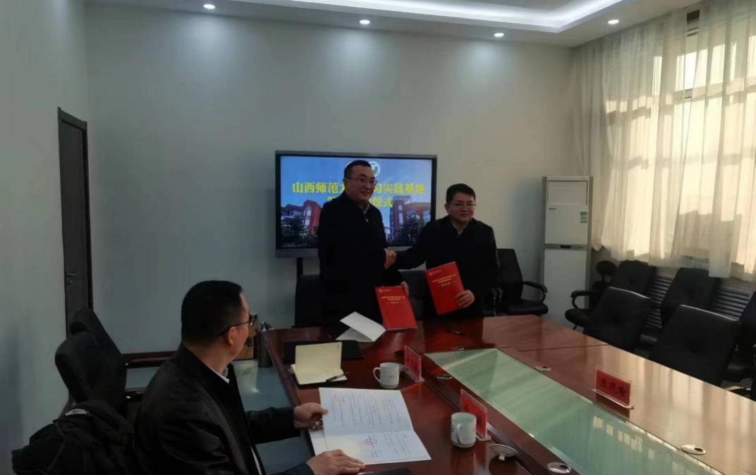 党委书记钱成与忻州市第一中学校校长陈汉明签订了《实践教学基地合作协议》并授予忻州市第一中学校“实践教学基地”牌匾。