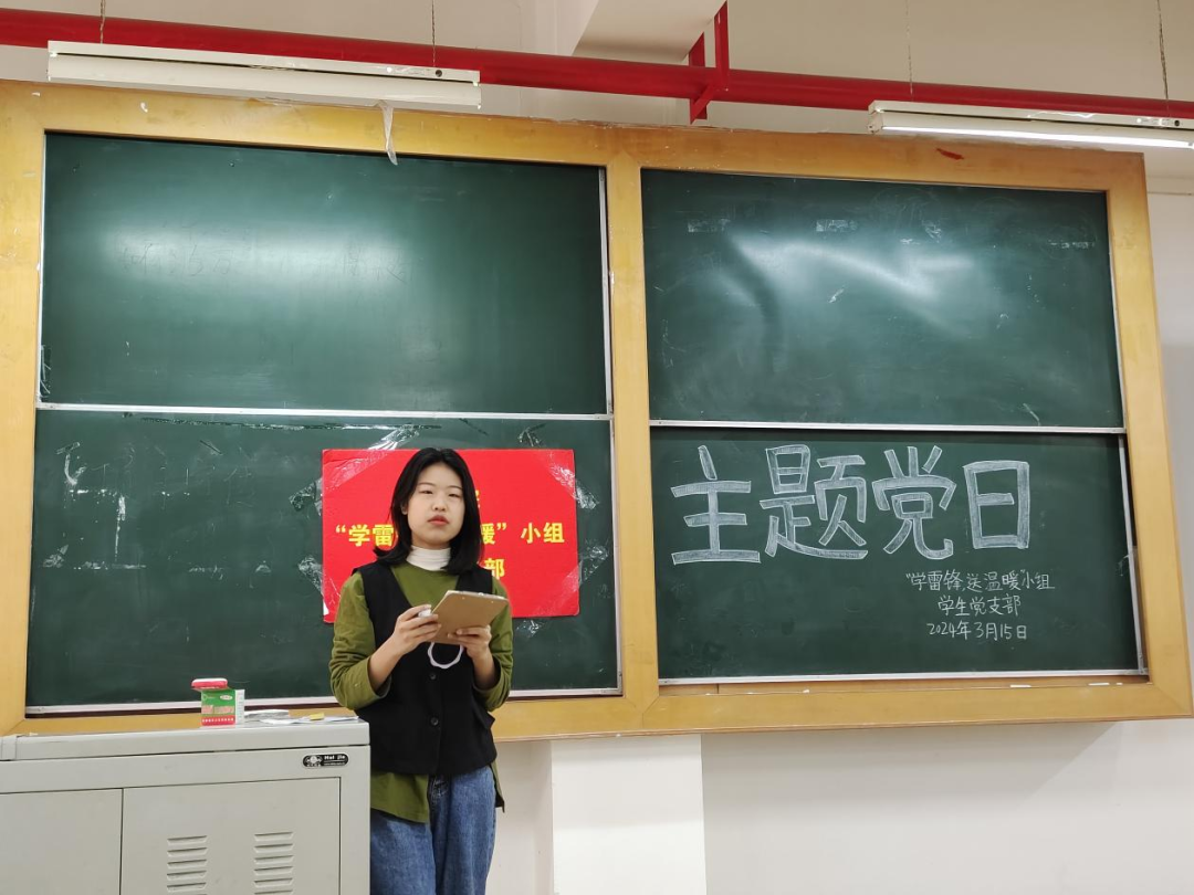 “学雷锋,送温暖”小组学生党支部在南区5107教室组织开展“聚焦两会——大学生高质量就业”主题党日活动,会议由支部书记安李蓉主持,支部全体党员和积极分子参加。江帆担任主讲人。