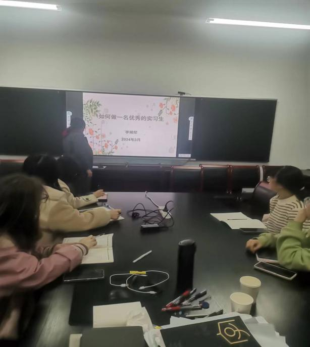 李娟琴老师从“思想跟上”“付诸行动”“仅是开始”三个方面向同学们系统介绍了如何成为一个优秀的实习生以及在实习中应注意的问题。她特别强调,在实习中要明确目标、转变角色、虚心学习、用心体验,并及时进行总结反思。在自由发言环节,同学们纷纷向李老师提问有关实习的问题;李老师结合自己多年指导实习的经验,耐心给予了解答。