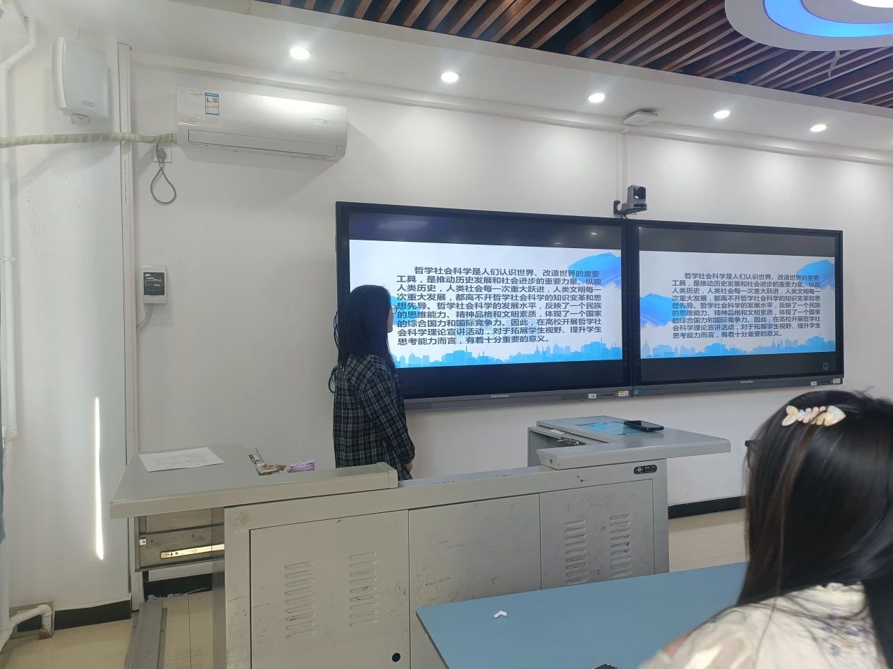 全体学生,程雅诗、王雅玲担任宣讲人,刘晋煊主持。王雅玲从哲学社会科学的概念及所涉学科入手,深入阐述了哲学社会科学的重要地位,并为同学们推荐了相关书目;程雅诗则主要讲解了哲学社会科学的理论流派、实践应用及其所面临的挑战与未来的发展。最后,刘晋煊对本次宣讲活动加以总结,希望同学们在今后的学习与生活中,能够主动加强对哲学社会科学的关注,并将理论知识与具体实践相结合,共同推动哲学社会科学的学科发展。