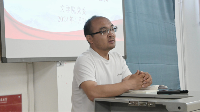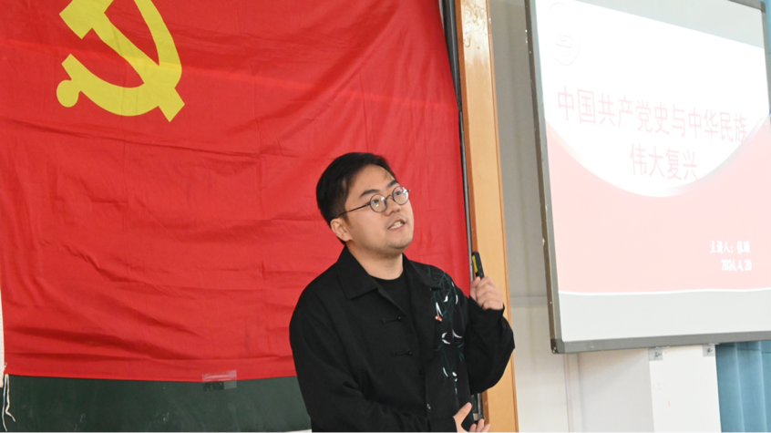 “红烛”学生党支部书记张渊从历史阶段的划分、中国共产党的产生发展以及中华民族伟大复兴角度讲述了中国共产党史,强调学史明理、学史增信、学史崇德、学史力行。此外他还结合自身实际,引用习近平总书记话语,提出艺术创作应运用民族化的内容和形式,体现鲜明的中国特色。