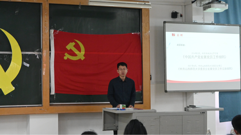 校党委组织部张益豪老师为大家详细介绍了入党的基本条件和发展党员工作流程,强调成为入党积极分子是发展党员基本程序的第一步,要对党员发展流程有清晰的认识,每一步都要走稳、走好。