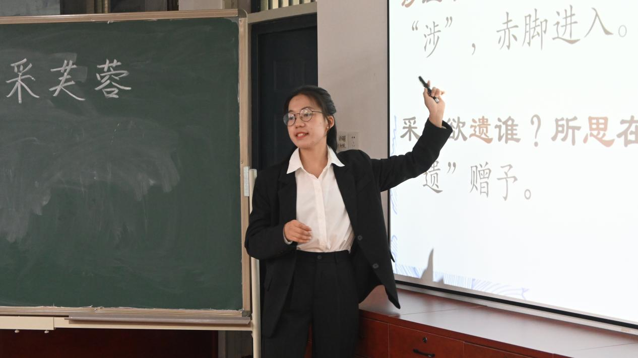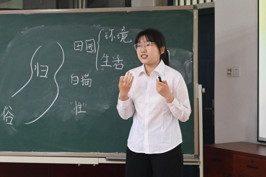 本次决赛共有13位选手入围,分为模拟讲课、即席演讲两个环节,现场气氛热烈。模拟讲课环节中,选手们为观众呈现了生动的情景导入、精致的教学课件、美观整洁的板书、独特的讲解思路和巧妙的课堂作业设置,将教学从课前延伸至课中甚至课外,选手们激情四射,细致讲解,字字句句中无不流露出对教育事业的无限热爱,选手们还将学科教学与思政教育相结合,生动诠释了教师立德树人的精神;即席演讲环节中,评委老师根据选手们的讲课内容,针对性地提出了一些问题。选手们思路清晰、表达流畅,展示了自己对语文教育相关问题的独特见解,引起了现场观众的共鸣与思考。