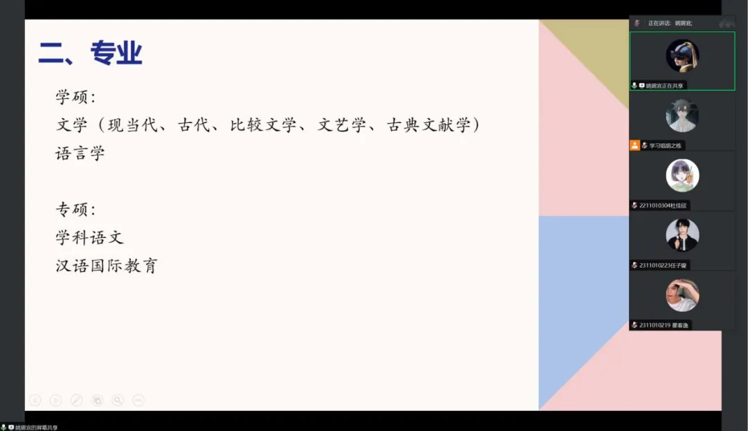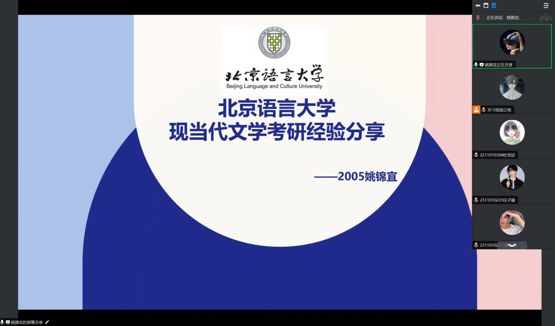 “妙笔经验谈,‘研’途不迷茫”考研经验分享会在线上成功举办。本次活动特邀郭志萍和姚锦宜进行分享,共200余名同学参加。