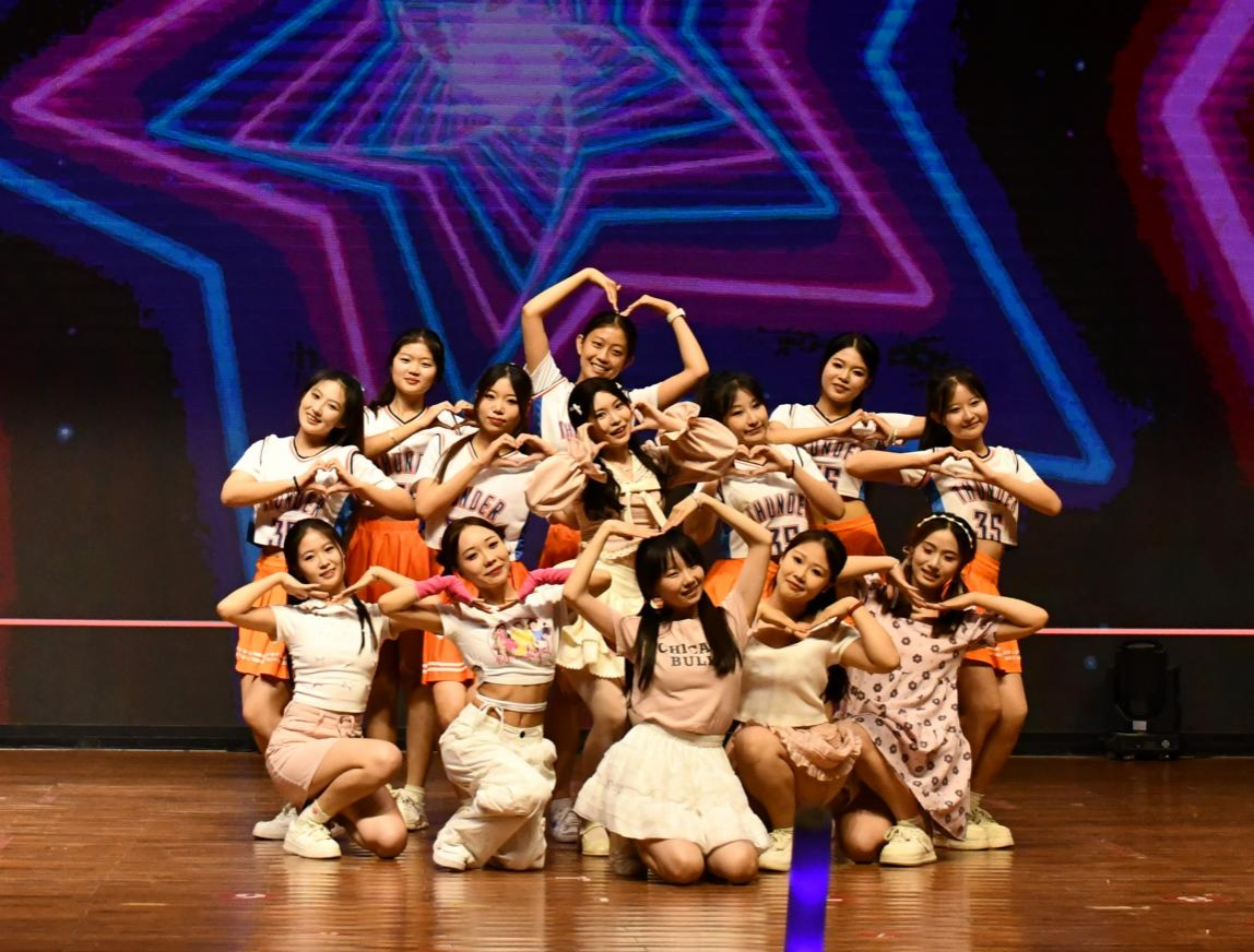 在颁奖环节之后,典礼的气氛转向轻松与热烈。同学们精心准备的表演节目依次登场,为毕业典礼增添了瑰丽的青春色彩。《送别+北京东路的日子》《追光者》《岁月神偷》《最美的太阳》唱出不舍与期盼;《pink venom》《Drama》《恋爱告急》舞出活力与激情;《青春记忆》诵出回忆与感激;《打劫》演出欢乐与哲理。最后师生齐唱《我们的明天》表达了对未来的美好祝愿和对母校的深深感激。