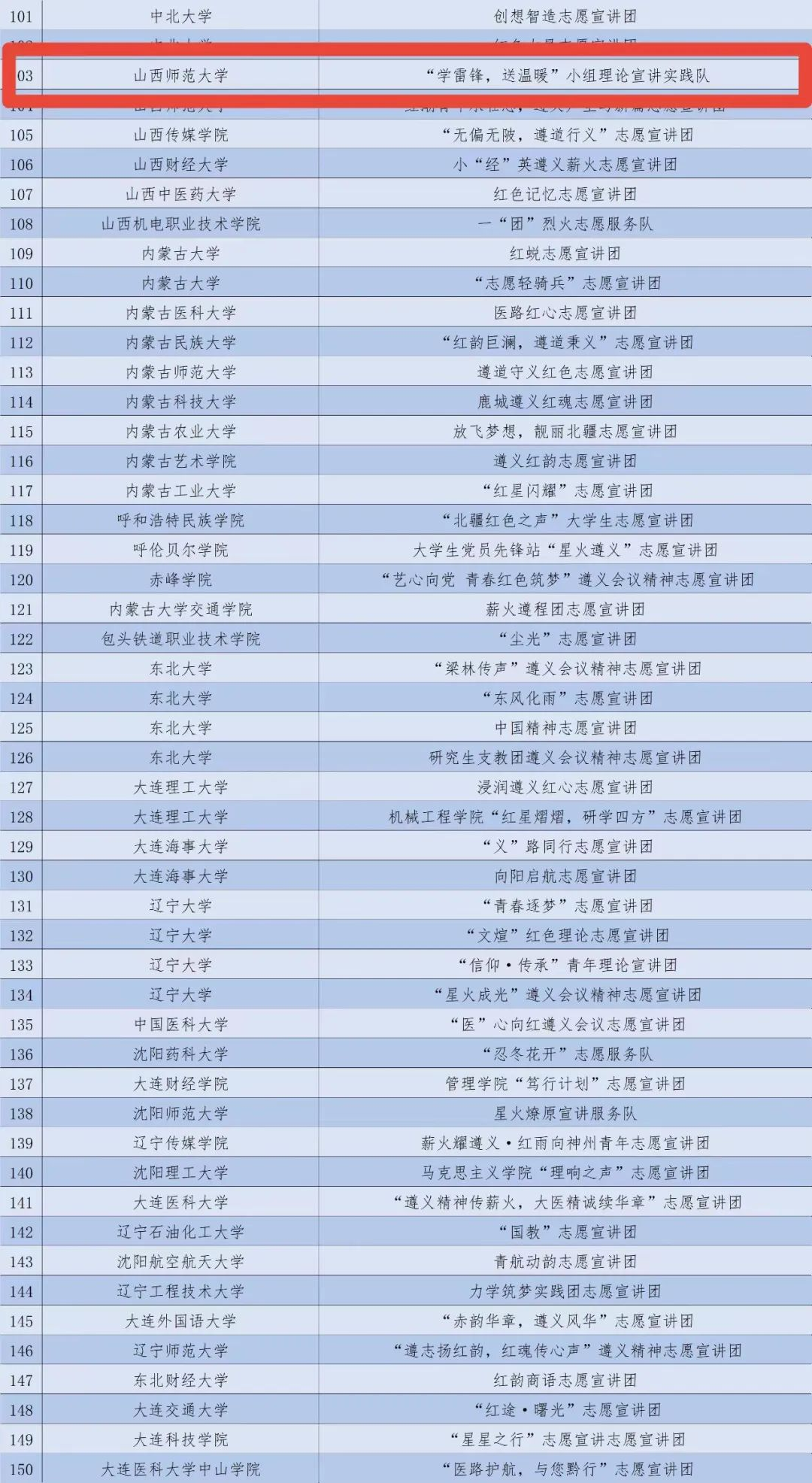 “学雷锋,送温暖”小组理论宣讲实践队成功入选遵义会议精神志愿宣讲团队名单。