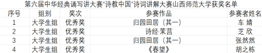 学子凭借扎实的中文专业功底和全面的语言文化素养,荣获“诗教中国”诗词讲解大赛优秀奖四项。