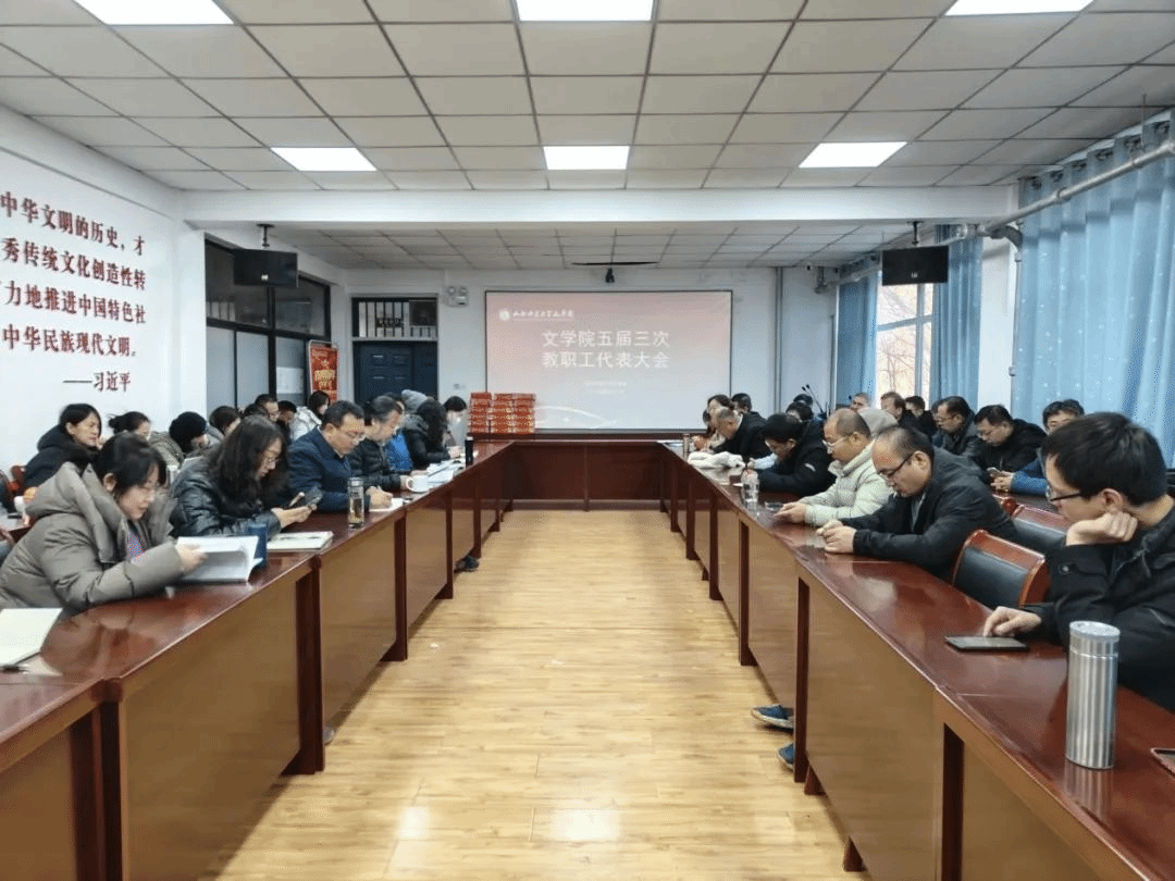 2201会议室隆重召开五届三次教职工代表大会,全体教职工参加会议,会议由院党委书记钱成主持。