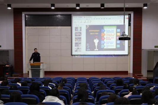 学工组在南区实验楼报告厅举办“防范电信诈骗”专题安全教育讲座,驻校民警裴警官主讲,赚钱网站