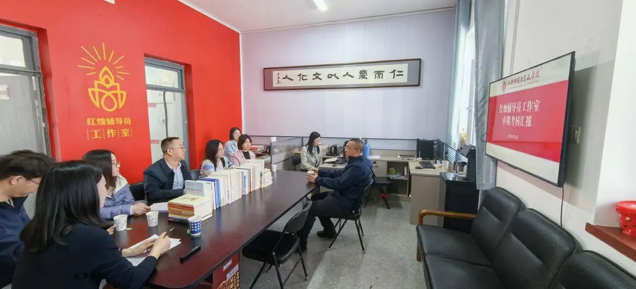 红烛辅导员工作室中期考核汇报圆满完成。此次考核由学生工作部部长王银带队,院党委书记钱成主持,工作室全体成员参加。