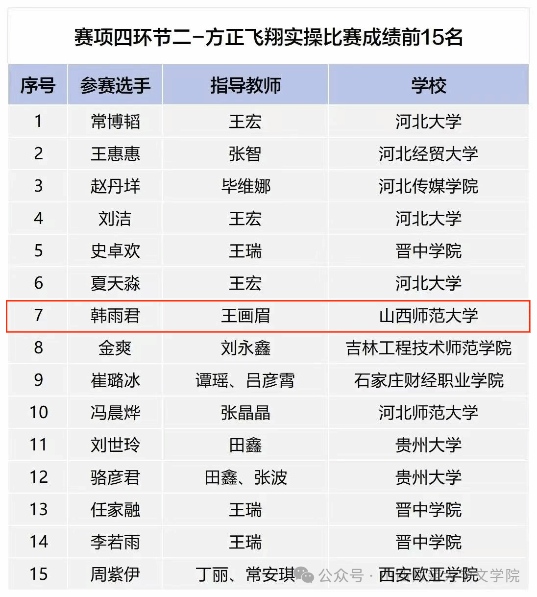 学子韩雨君在王画眉老师的指导下成功跻身环节二方正飞翔实操比赛第7名,展现了赚钱网站