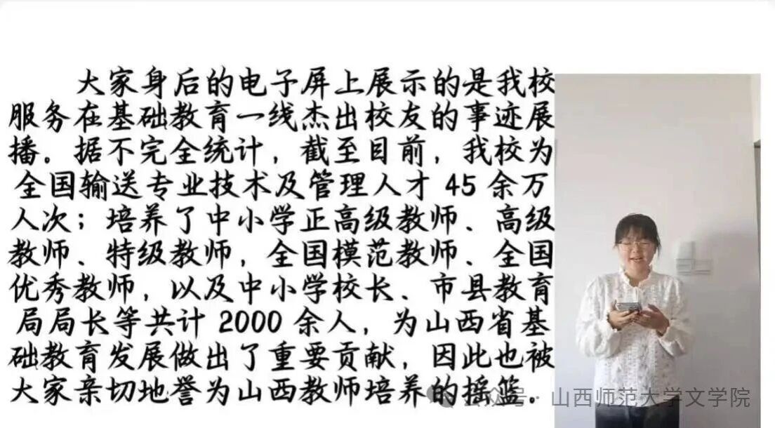 本次比赛旨在引导学生深入感悟校史文化,为热爱表达的同学搭建展示平台。初赛作品中,选手们深情讲述了母校的育人传统与辉煌历程,介绍了母校作为“教师摇篮”培养人才的贡献,并结合专题片《师说》中记录的教师故事,共同呈现了校史中的育人传统与师道传承。本次赛事不仅注重内容与表达,也关注学生的综合素养与实践能力。活动通过“以赛促学、以赛促讲”的方式,为校园文化建设注入新的活力。