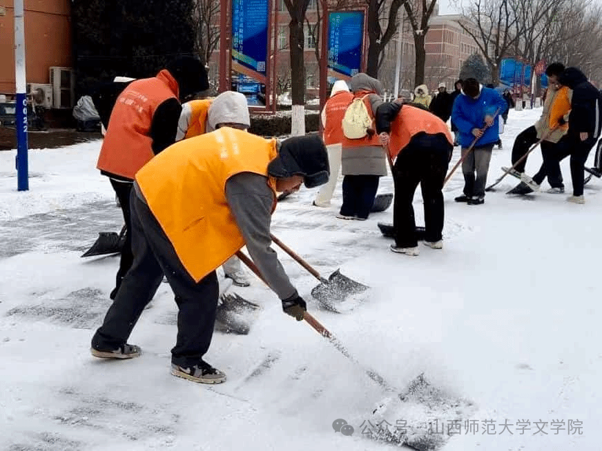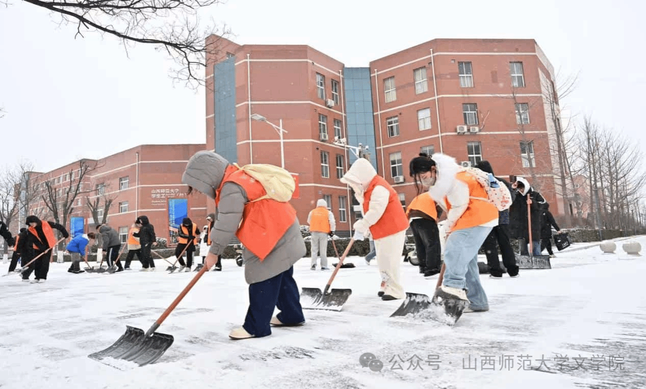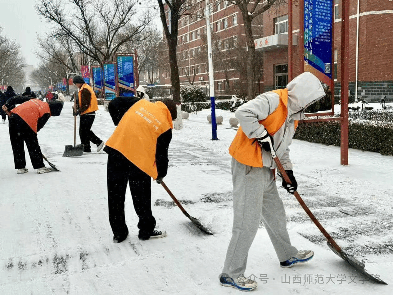 “学雷锋,送温暖”小组在南区思政文化街举办“携手除冰雪,真情暖寒冬”扫雪活动。本次活动以践行劳动精神、弘扬雷锋精神为宗旨,引导同学们在实践中厚植奉献情怀,将助人为乐转化为服务校园的实际行动。