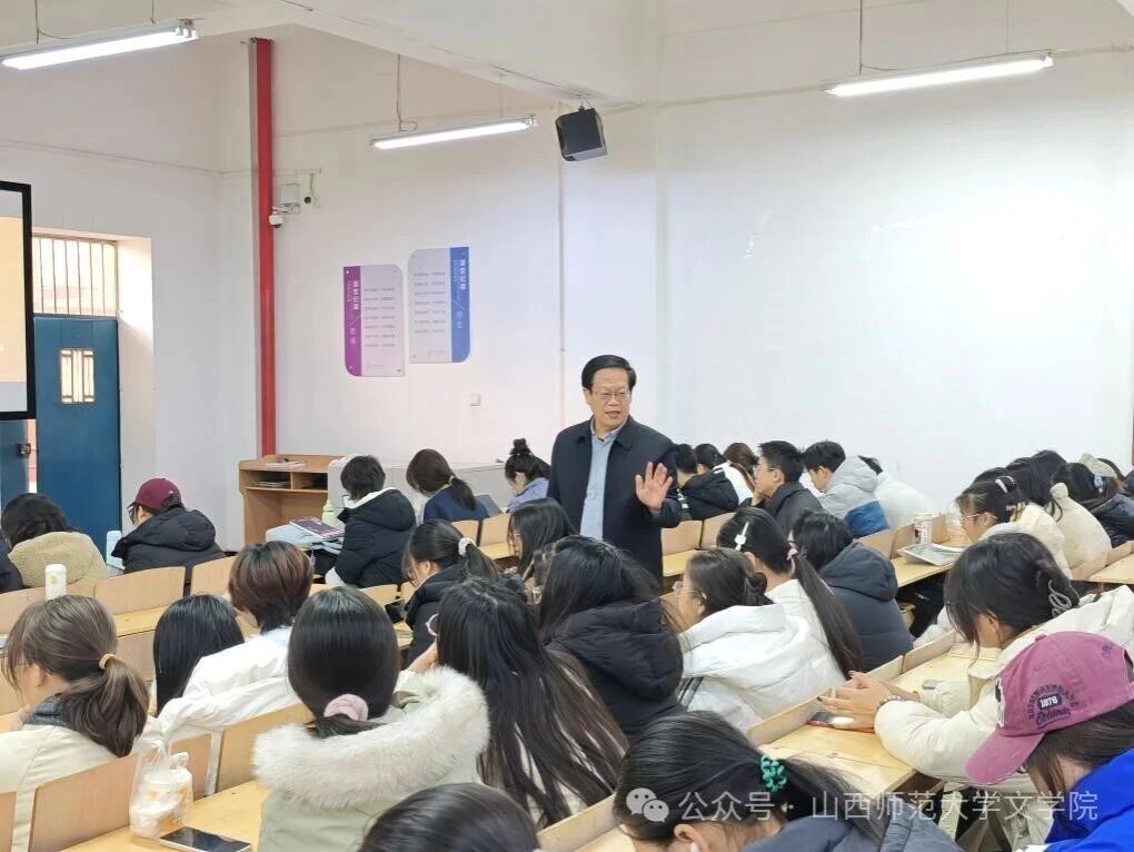 特邀语文报社原副社长、编审,《语文教学通讯》(CSSCI)原主编,山西师范大学出版专业硕士研究生行业导师,兼任中华文化促进会儿童文化委员会副主任、中国语文报刊协会写作教学专业委员会理事长裴海安,于南区3209多媒体教室作题为“教研论文优化指南”的学术讲座。讲座由薛月兵老师主持,部分本科生和研究生到场聆听。