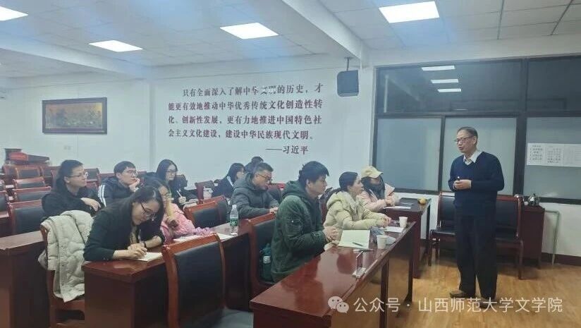 2201会议室作题为“问题意识与学术创新——以夏目漱石与老舍比较研究为例”的学术讲座。讲座由高超老师主持,部分研究生到场聆听。