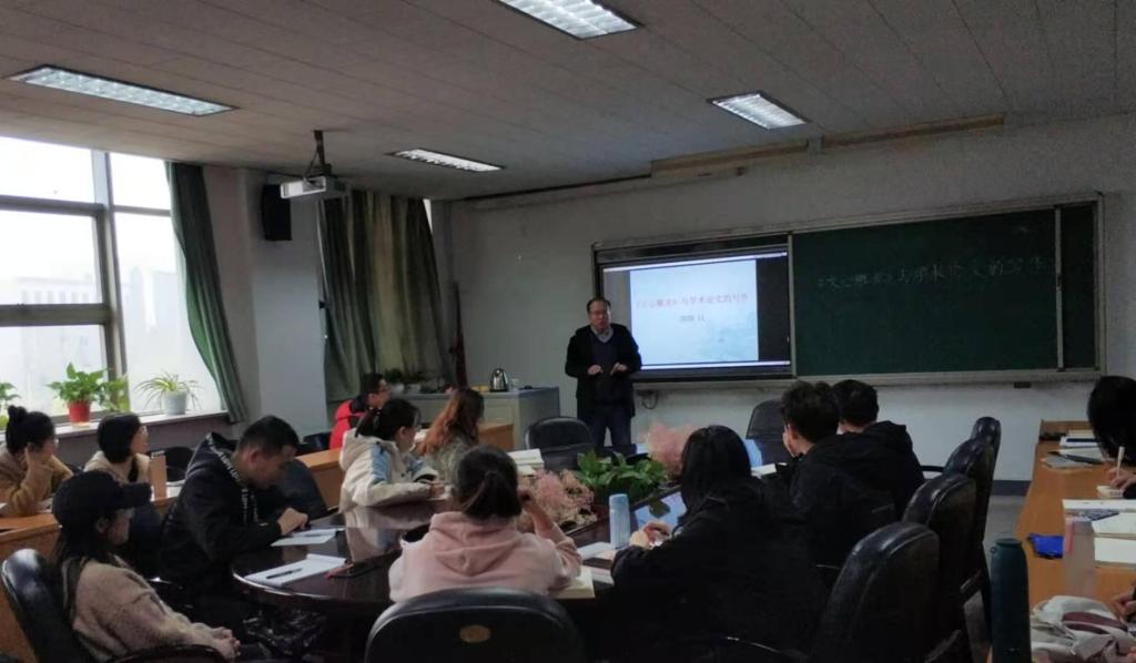 白老师结合《文心雕龙》中的某些观点与自己的写作经验,对学术论文的写作进行了讲解。第一,从选题角度看,要多读、多思以发现问题,结合自己的兴趣进行选题,在此过程中可以模仿一些优秀的学术论文,即刘勰所说的“摹体以定习,因性以练才”。第二,要明确选题的研究范围及研究对象。第三,要重视研究综述或研究动态,以避免重复劳动。具体来说,“弥纶群言,研精一理者也”,即收集各家之说,在揣摩前人研究成果的基础上发现其不足之处。第四,研究提纲的设置尤为重要。概言之,要做到提纲挈领,纲举目张,辞尚体要,首尾一体。最后,白老师还指出研究方法和研究思路要具体清晰,要有针对性,不作泛泛之论。
