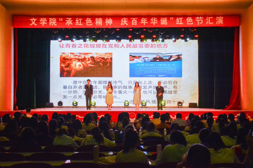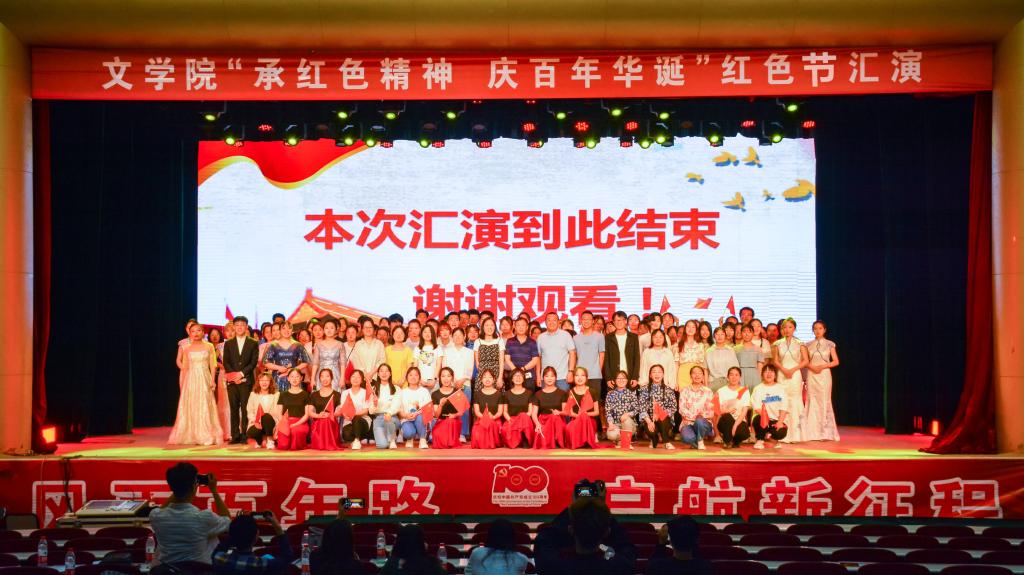 大学生“知党爱党跟党走”的坚定信念。本次短暂的演出在《不忘初心》的演唱中落下了帷幕,但本次红色节演出将会长久地激励着文院学子不忘初心、牢记使命。