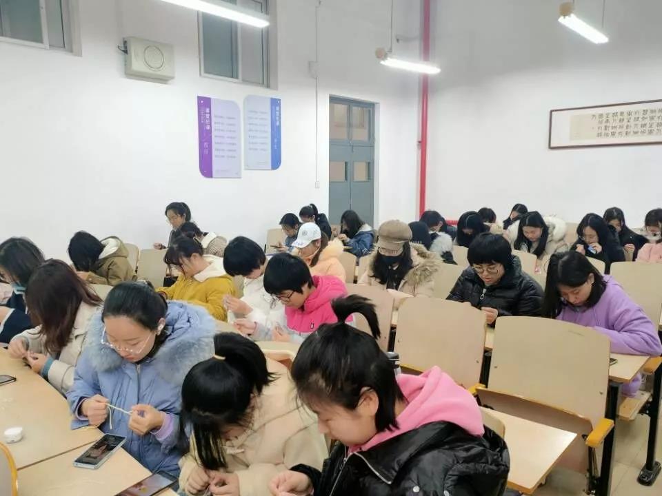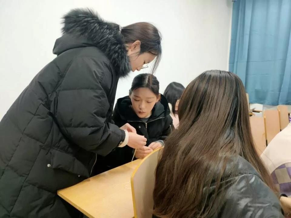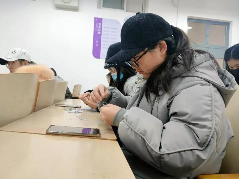 活动在悠扬的音乐中进行,活动主持人首先介绍了活动的规则流程,通过播放宣传视频介绍了编织的相关知识,并将编织材料发放给同学们。在编织小老师的指导下,同学们纷纷兴趣盎然地研究起自己手中的绳线。通过老师教授的方法,一条条漂亮的手链、围巾,一个个色彩丰富的香囊被心灵手巧的同学们编织了出来。活动结束后,大家进行了合影留念,同学们纷纷表示编织十分有趣,为自己又能学到一门手艺而开心。